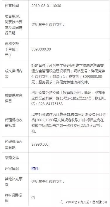 于2019年8月1日順利中標(biāo)——蘇洵中學(xué)等9所新建學(xué)校周邊道路交通安全管理設(shè)施建設(shè)工程量3090000元。